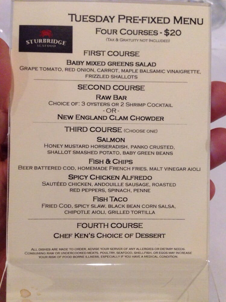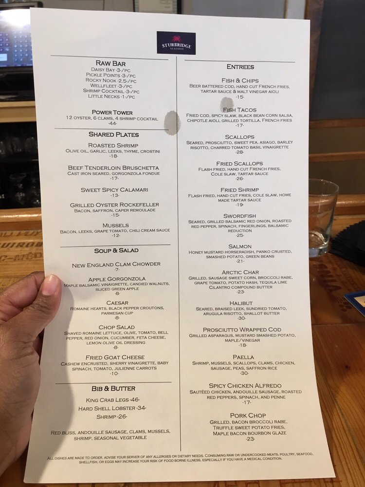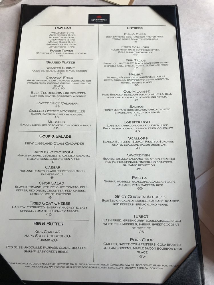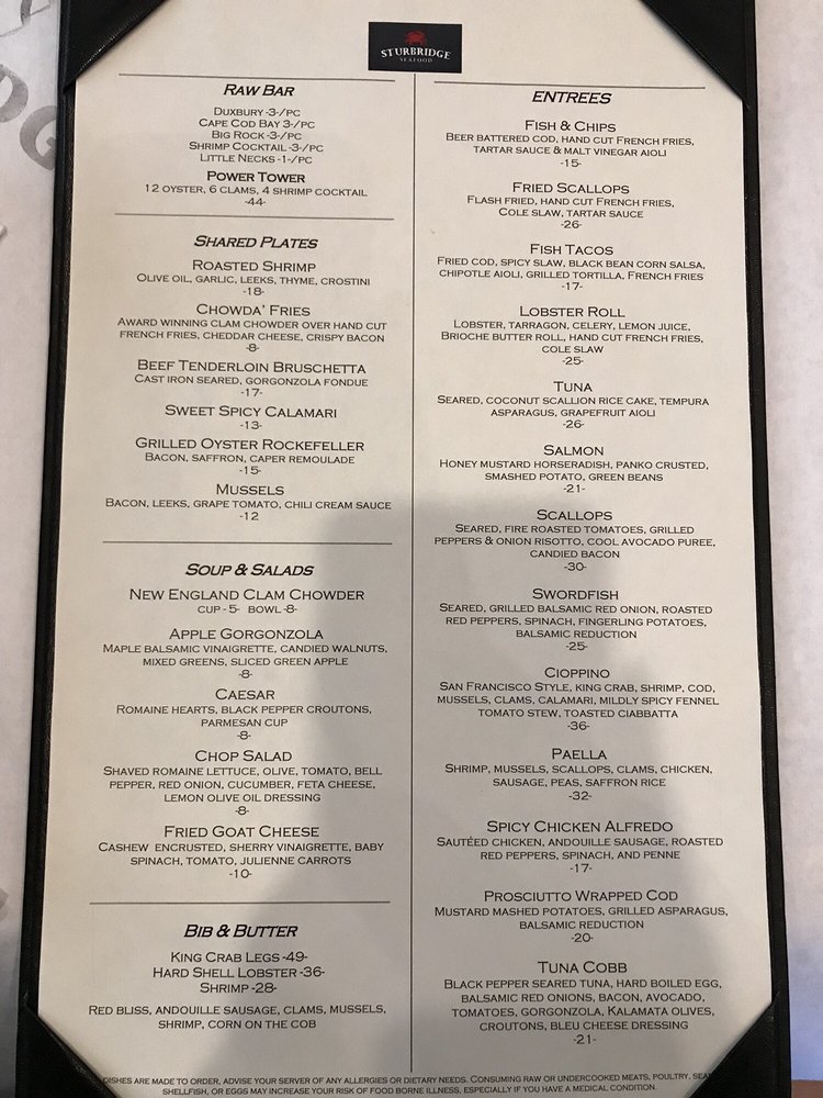 Sturbridge Seafood Menu